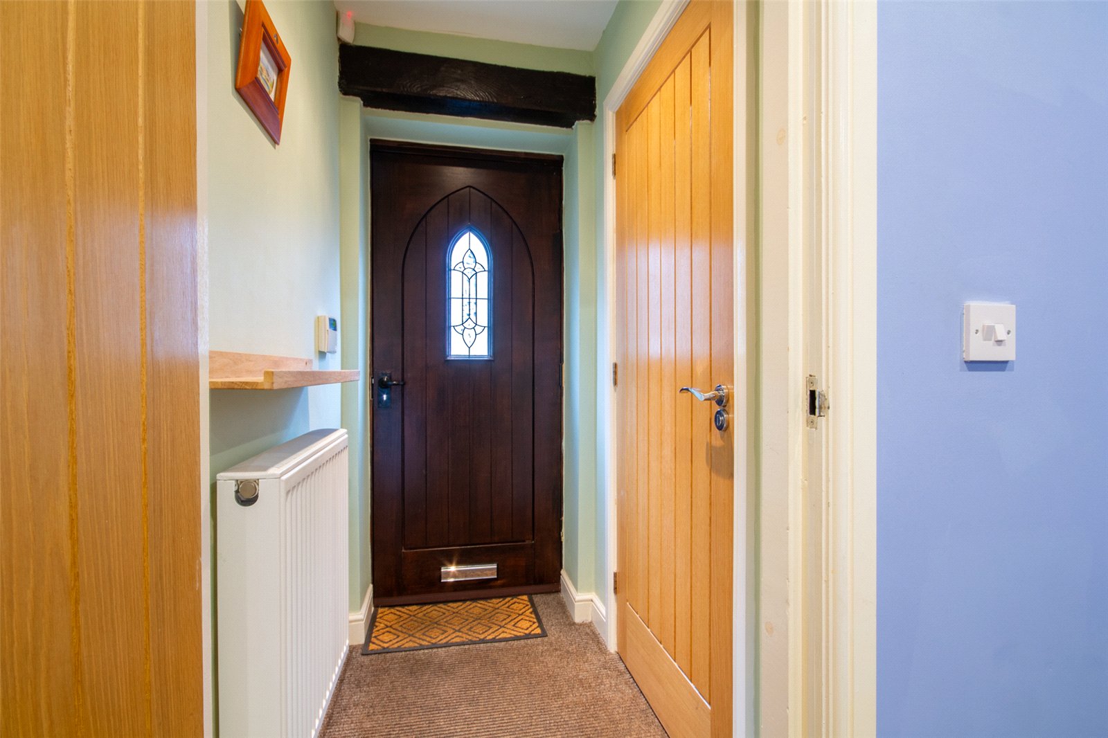 From Cross Lane, a forecourt leads to the wooden front door and into: