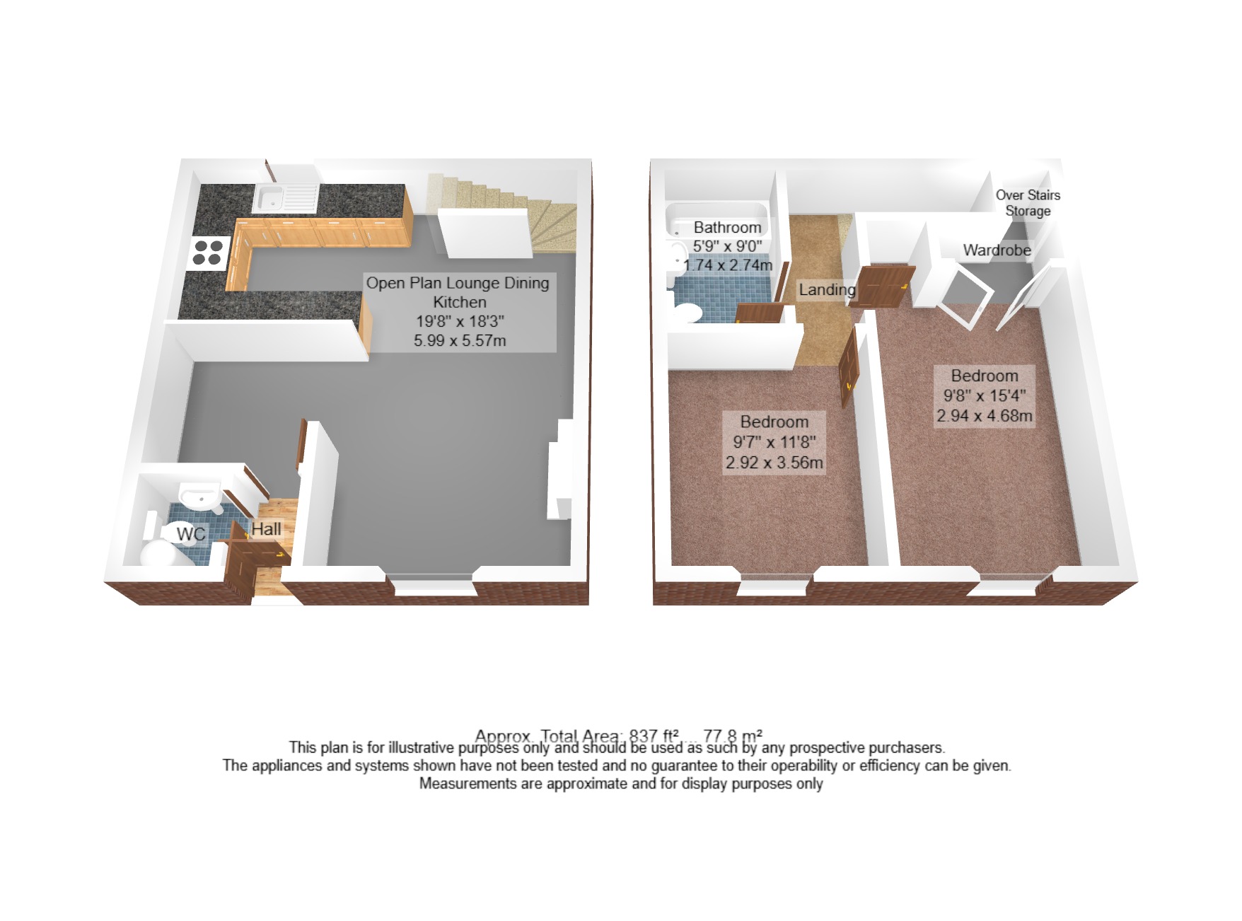 Having larger than expected dimensions, this two bedroom mid terraced house is a perfect first time buy or easily managed downsize. The property forms part of a row of similar properties converted in 2016 from one of the original Kendal Mint Cake factories, and has a fantastic position close to the town centre. The Brewery Arts Centre, Abbot Hall Park and Gallery, riverside walks, shops and restaurants are all on the doorstep and the property is within the historic Kendal Conservation Area. The accommodation is over two floors with a generous open plan lounge dining kitchen space and a ground floor cloakroom. The first floor has two double bedrooms and there is a well fitted stylish bathroom. Gas centrally heated and double glazed windows. Burglar alarm and window locks, satellite TV dish.