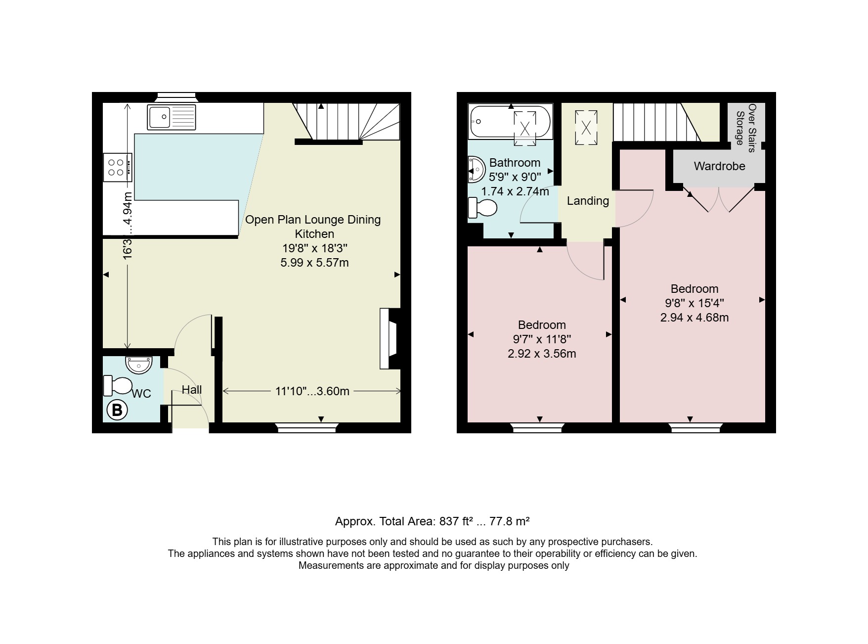 A real bonus in a property of this style, the cloakroom is fitted with a pedestal hand basin and WC. The walls are half tiled and there is an extractor, coat hooks, a downlight and tiled floor. Wall mounted electric fuse box and Glow Worm boiler.