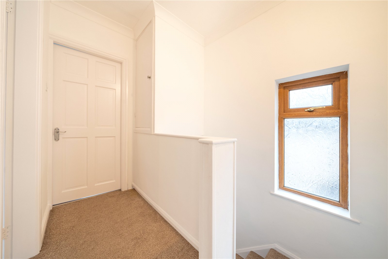 Frosted double glazed window to the side elevation. Access to the loft, a ceiling light and built-in over stairs cupboard.