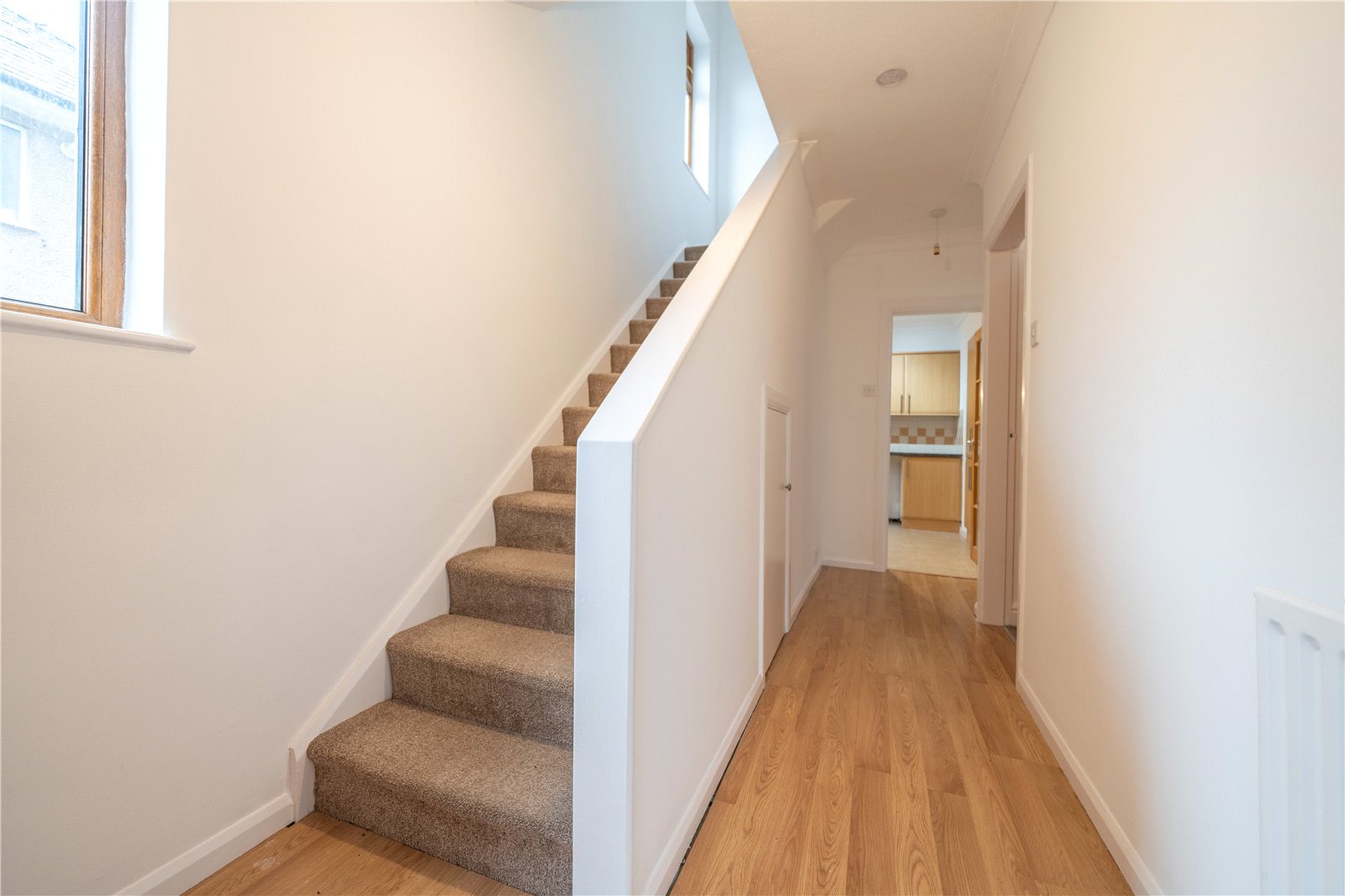 A double glazed window faces the side elevation and there is a useful built in coat cupboard and further storage under the stairs. Two ceiling lights and a radiator.