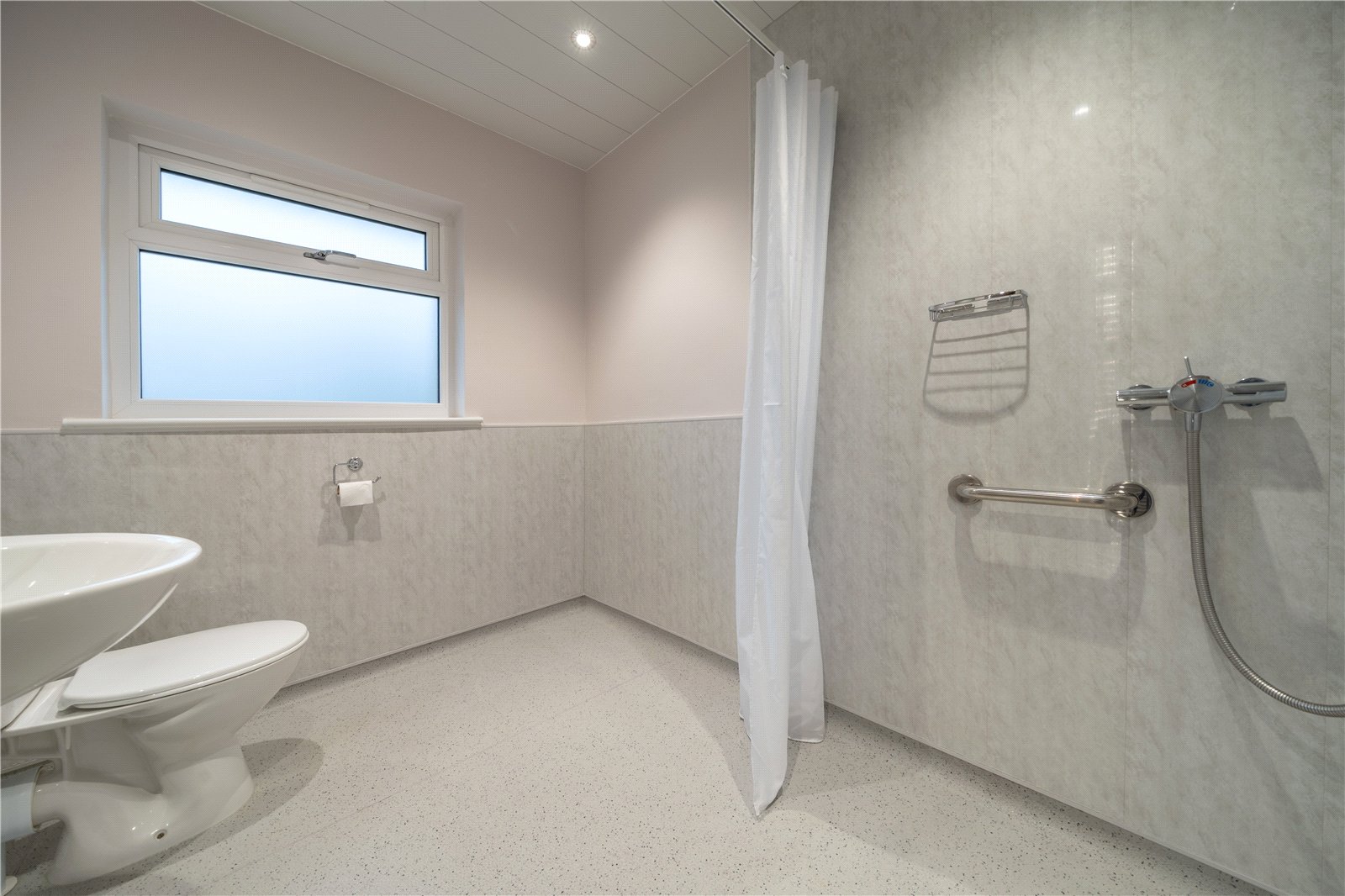 Both the bedrooms are good sized doubles with the larger having two built in double wardrobes and a lovely view at the rear. The wetroom is ideal for buyers with reduced mobility with an open shower area, WC and hand basin. Low maintenance flooring, a clad ceiling and aqua board panelling give the space a sleek modern feel and there is a chrome heated towel rail.