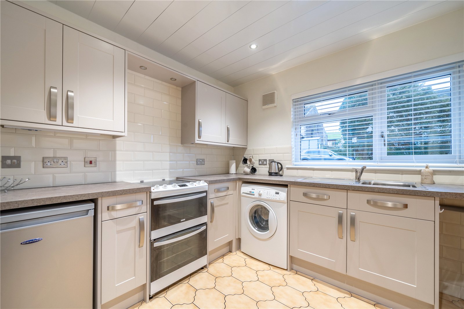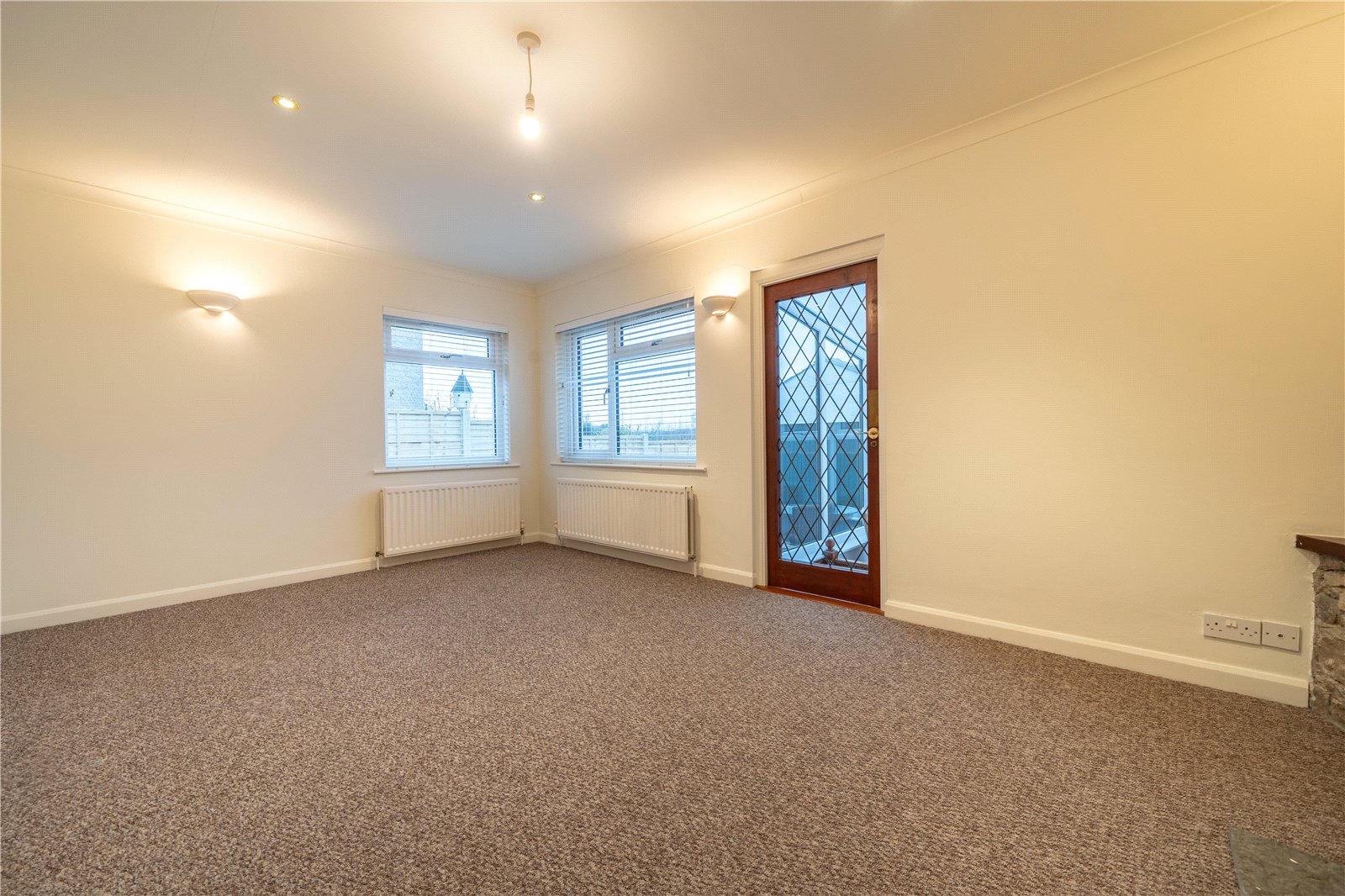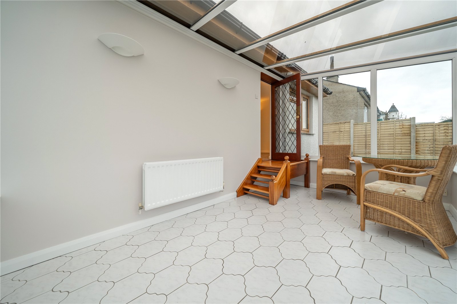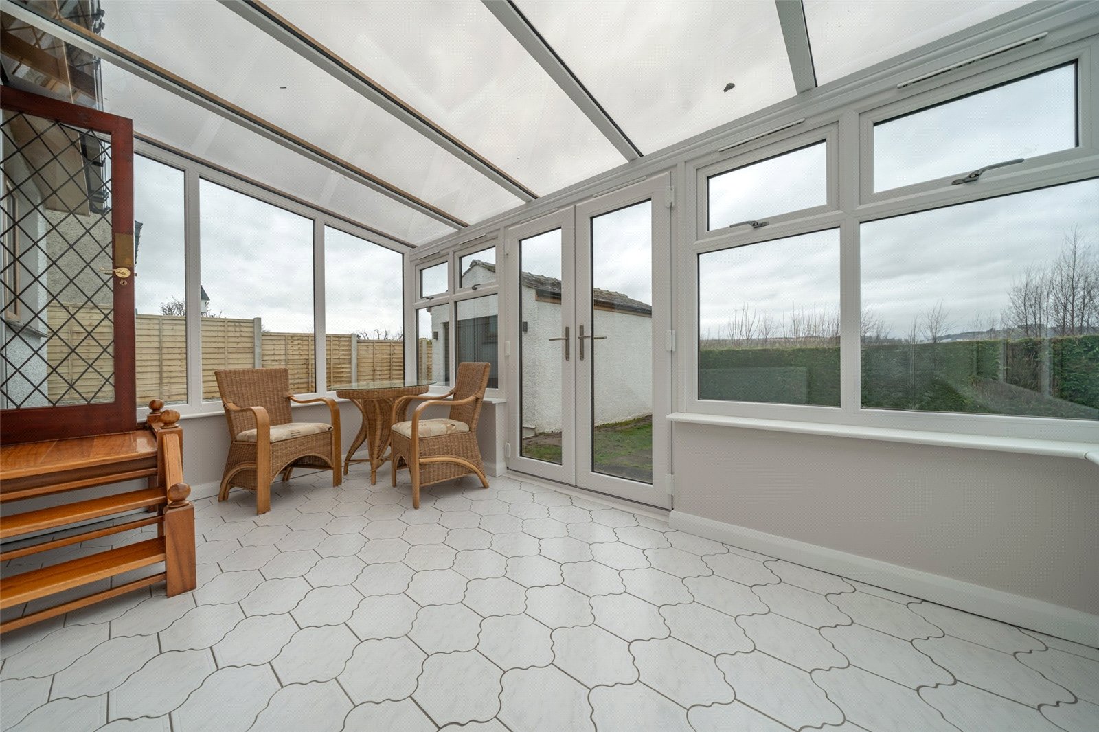 The pretty coloured front door leads into a welcoming T shaped hallway with a tiled entry area, perfect for wet shoes and coats. The hallway is wider than expected and more storage could easily be accommodated. There is a built in cupboard plus doors to the two bedrooms, wetroom, kitchen and lounge/diner. Entering the lounge/diner, you immediately notice how light the room is with two windows at one side plus a glazed door to the conservatory. There is a stone fire surround with grate for an open fire. The adjoining conservatory has a lovely view over the garden and Kendal towards distant hills. Fully double glazed including the roof, the conservatory has a radiator and lighting ensuring it is usable all year round and double doors lead to the garden. The kitchen is at the front of the bungalow. Pale grey units are complemented by the stone effect worktops and there is an electric cooker and a breakfast bar nook. The pantry has been retained providing further storage for dry goods and kitchen equipment and there is a side porch with access to the drive. The Ideal boiler is within a cupboard in the porch.