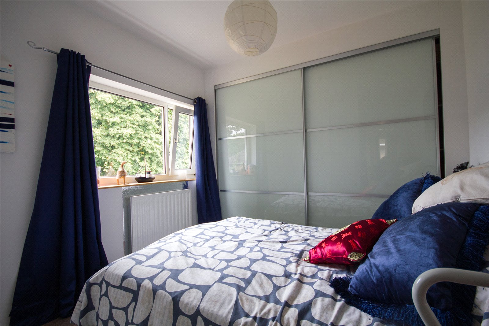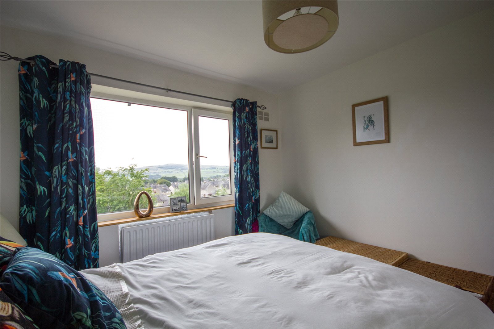 Facing the front aspect and having a 180° view across Kendal towards hills and fells. Exposed floorboards, a ceiling light and radiator. Built in double wardrobe with mirrored sliding doors.