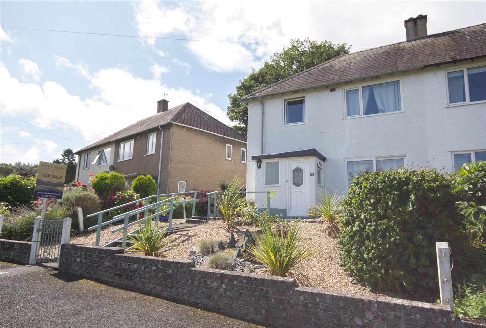 Leaving Kendal on Milnthorpe Road, turn right onto Garth Brow and follow down to the left onto Hallgarth Circle. Turn left onto High Garth, staying right as the road divides. Number 77 is to the left hand side, set up from the road.