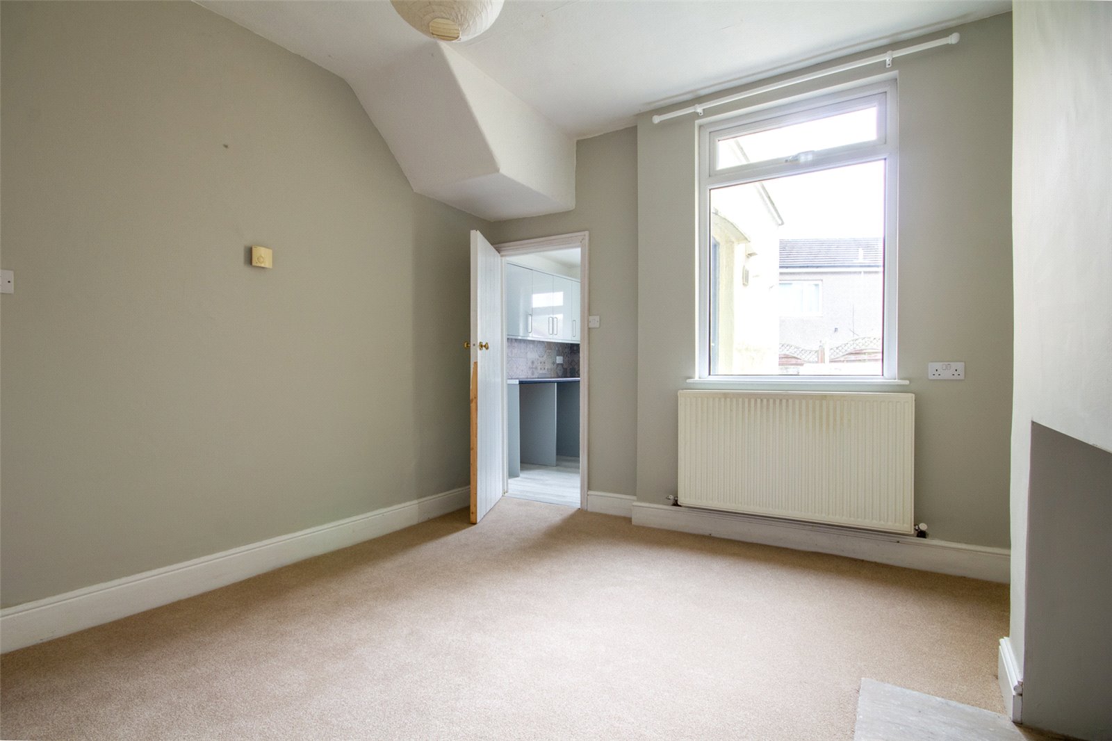 UPVC double glazed window faces the front aspect. Neutrally decorated room with radiator, television aerial cabling and ceiling light.