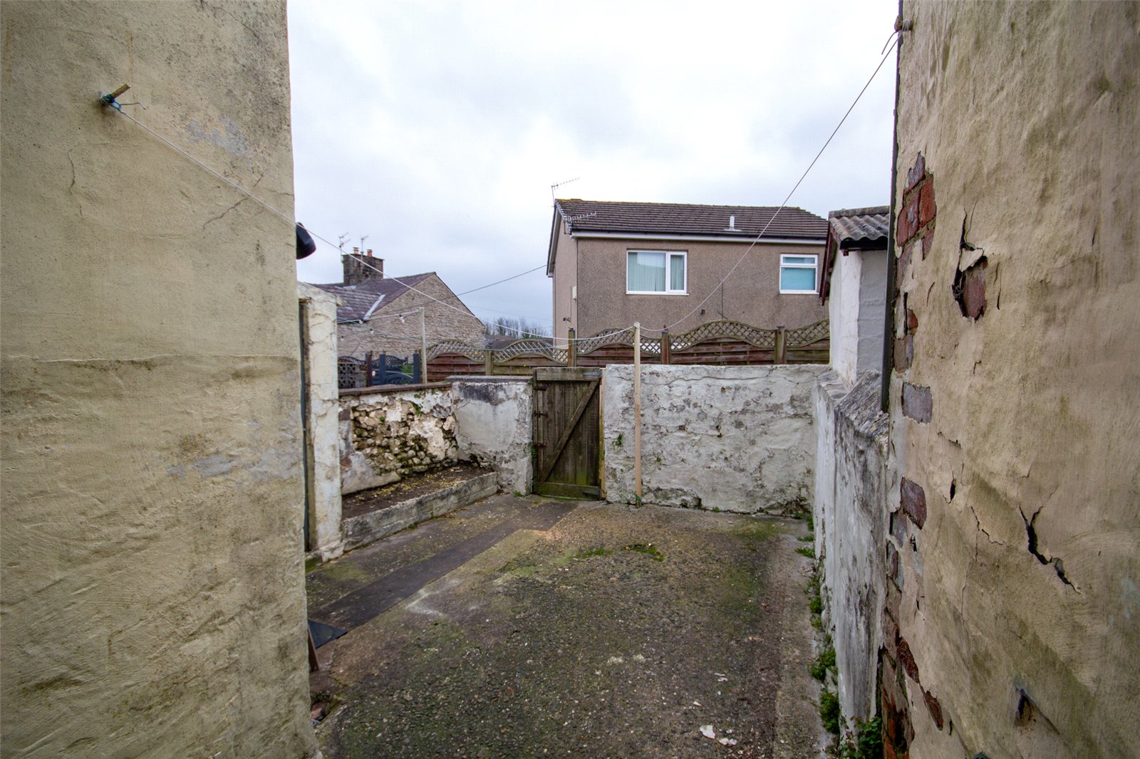 At the rear is an enclosed yard with space for pots and furniture and a gate leading to the rear access lane. Block outhouse.