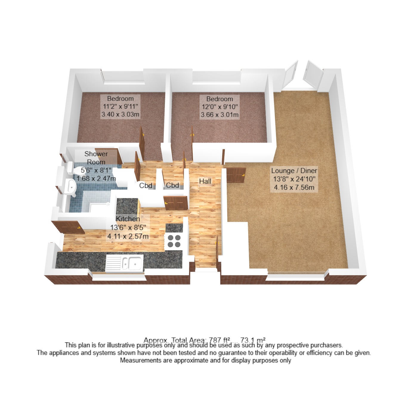5' 6" x 8' 1" (1.68m x 2.47m) plus alcove