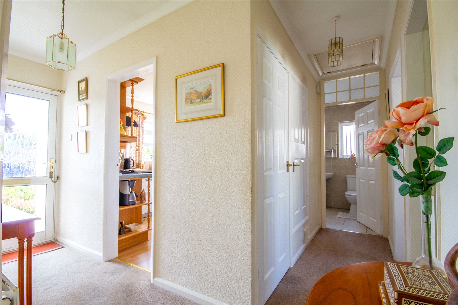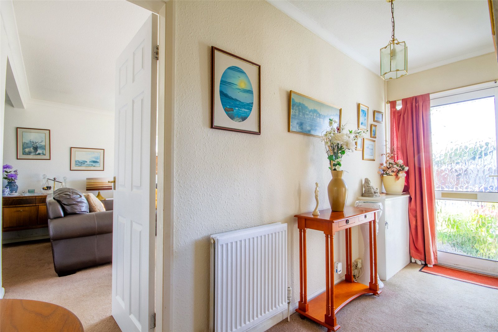 The garden at the front of the bungalow is lawned with pretty shrub and evergreen borders. The driveway extends to the side of the bungalow to the garage at the rear. The rear garden is a good size with two lawn areas and a deck, prefect for seating, close to the bungalow. There are shrub and flower borders, a mature acer and trees for privacy. The garden is enclosed by hedging and fencing.