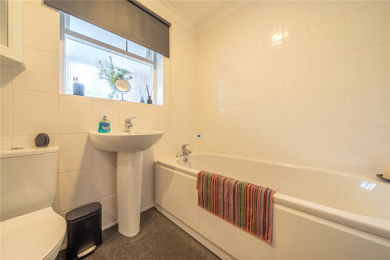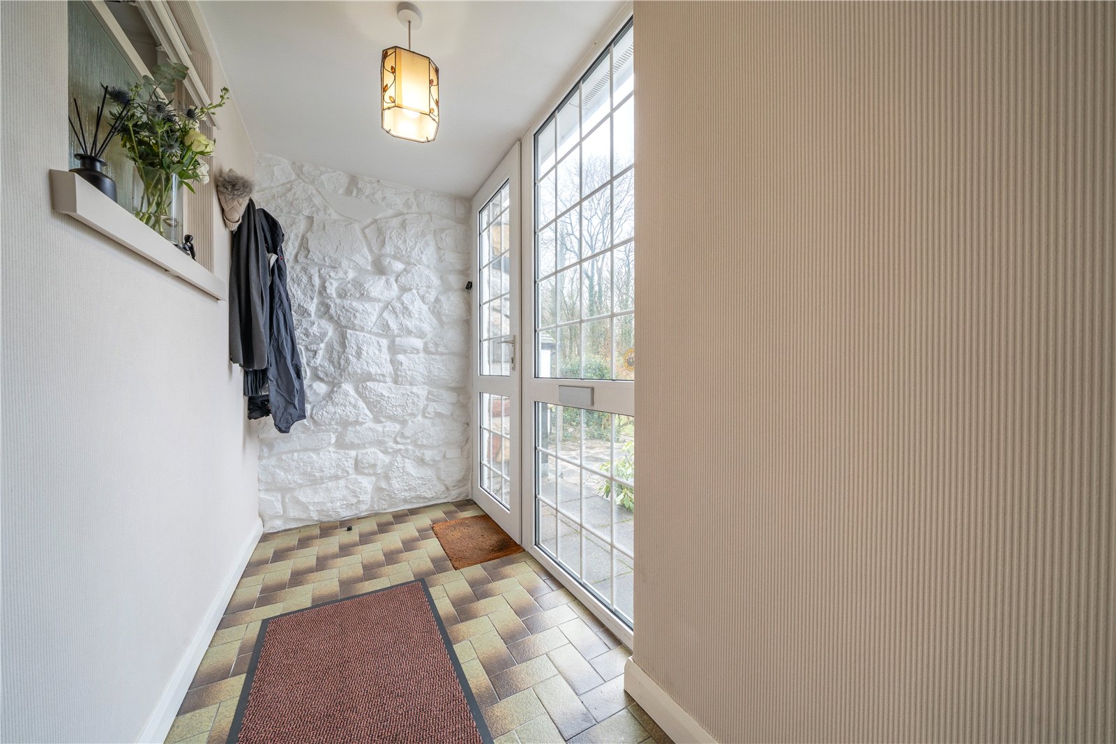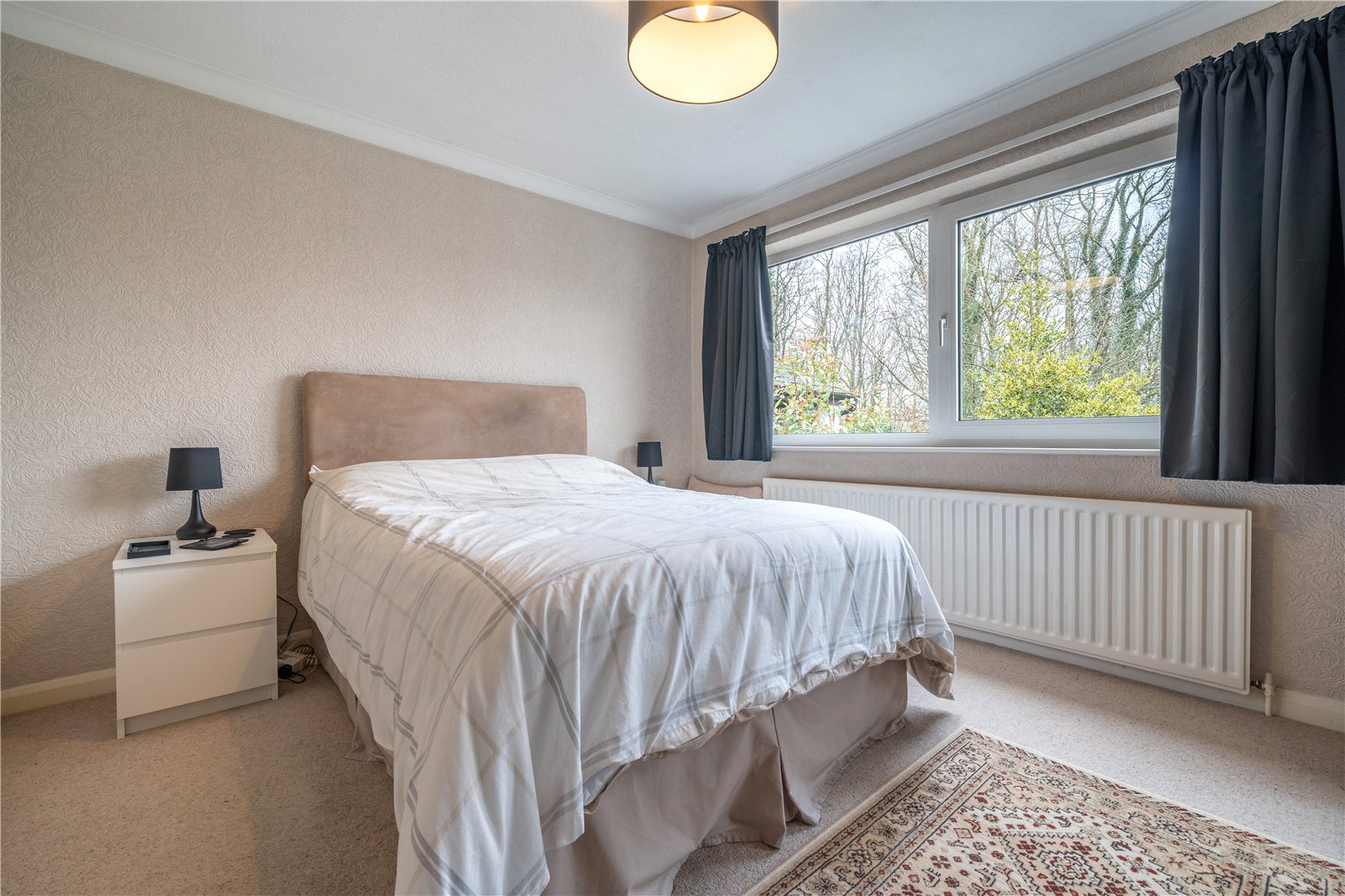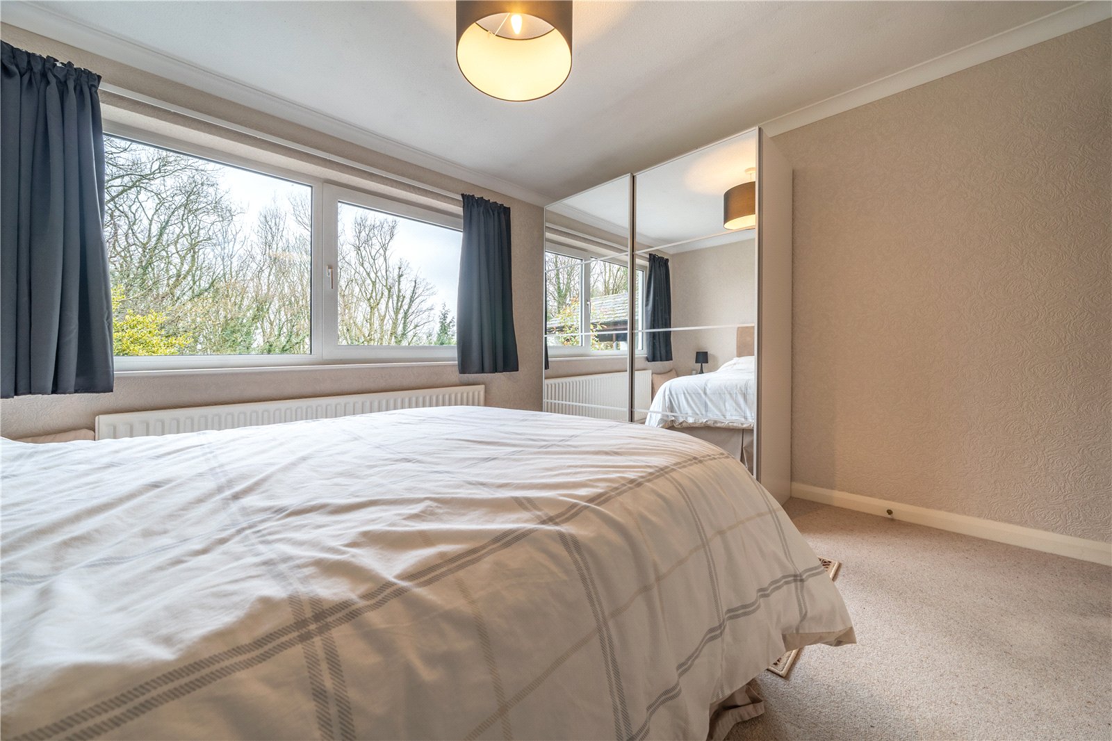The bedrooms and bathroom are positioned at one side of the property, ideal for privacy considerations. The main bedroom enjoys the treetop and woodland view at the front and has a large mirrored double wardrobe. The second double and good sized single are at the rear with view over the garden and fields and both bedrooms have built in wardrobes. The bathroom is fully tiled in white so can be easily personalised and is fitted with a four piece suite, ideal for families.