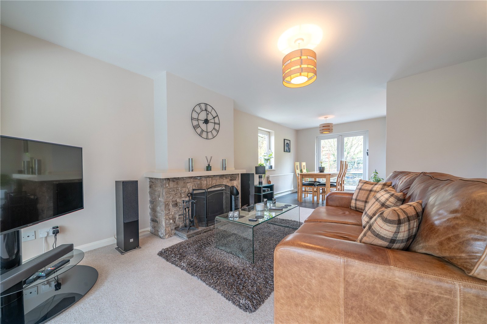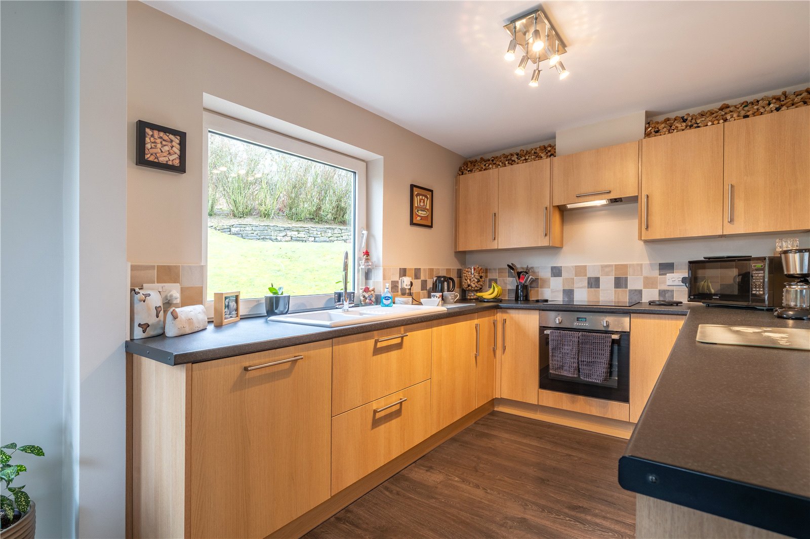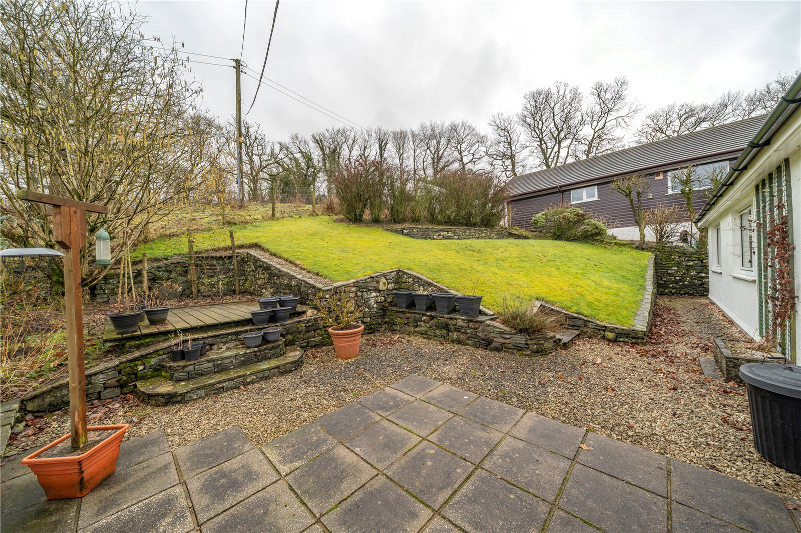 High Shaws has a sloping plot with the front garden terraced with flagged areas, a pond and long driveway. There is a carport and the garage houses the boiler, a second washing machine (included in sale) and the oil tank. A handy room adjacent to the garage could be used as a home gym, studio or for storage and offers further potential. The rear garden bounds open fields and there is a lawn, deck and patio seating areas.