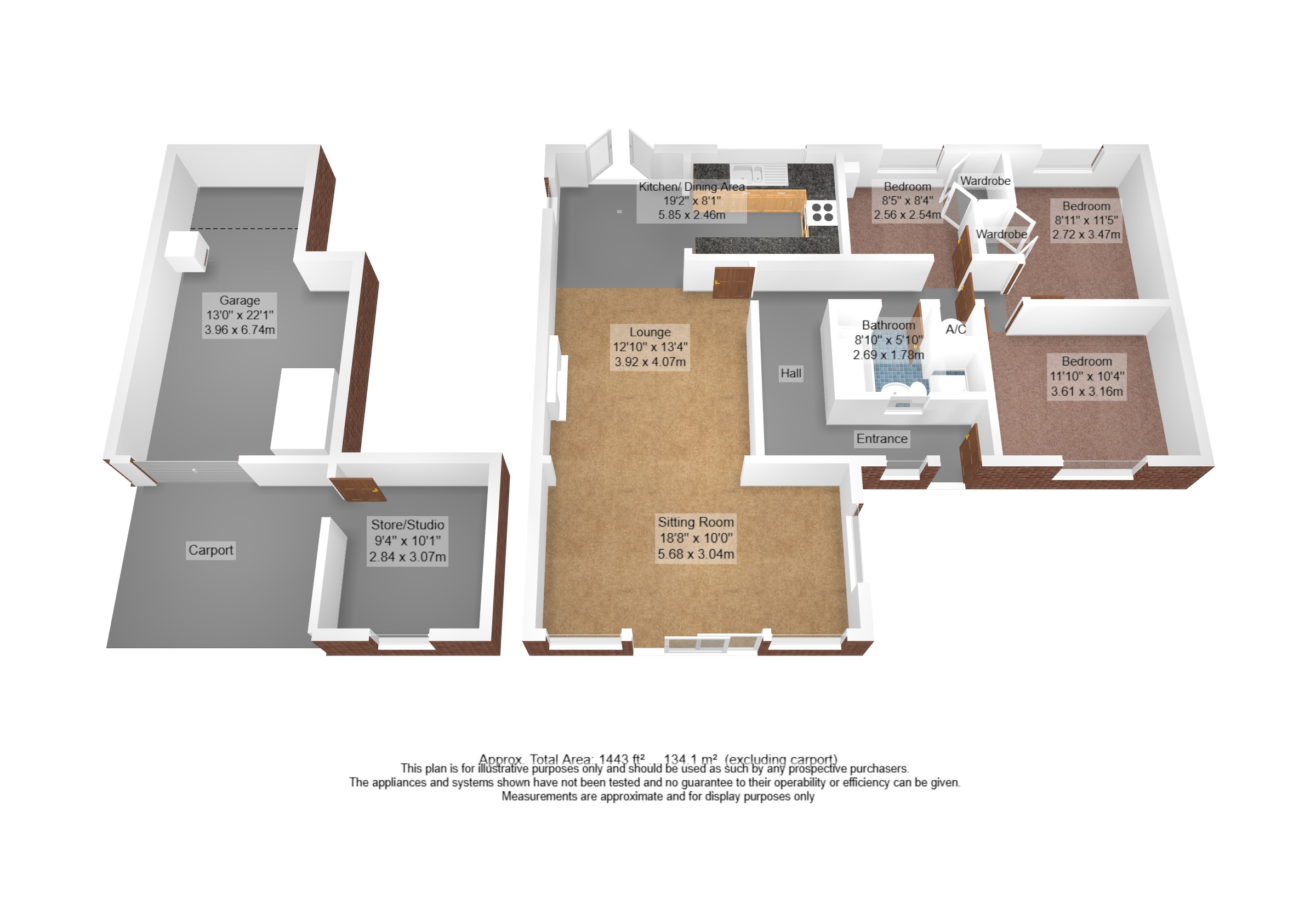 Bedroom 8' 11" x 11' 5" (2.72m x 3.47m) excluding wardrobes