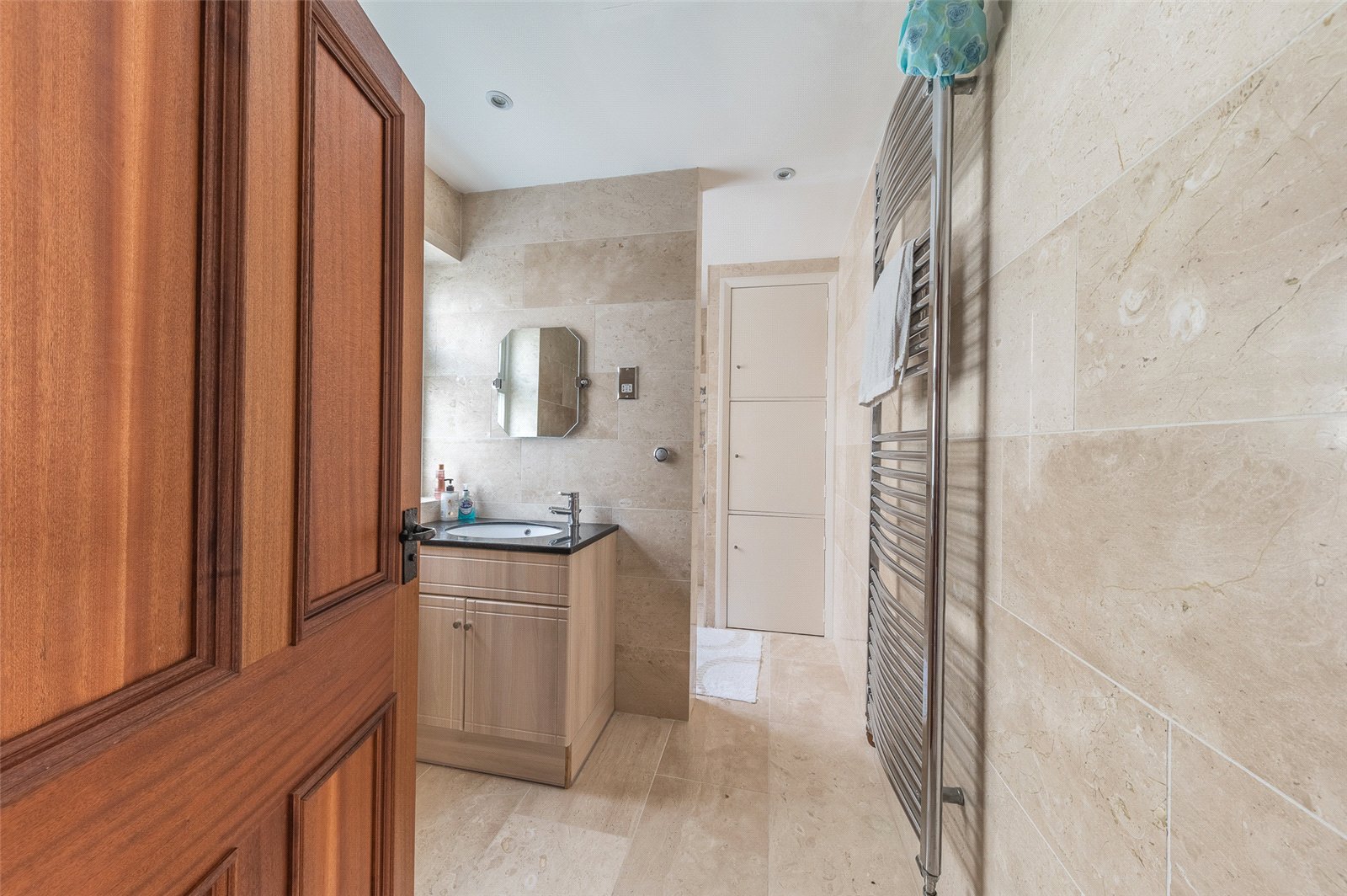 Also overlooking the garden, the fifth double bedroom could also be used as a home office and there is a built-in double wardrobe, overbed storage and a single wardrobe. Double glazed window, a ceiling light and radiator.