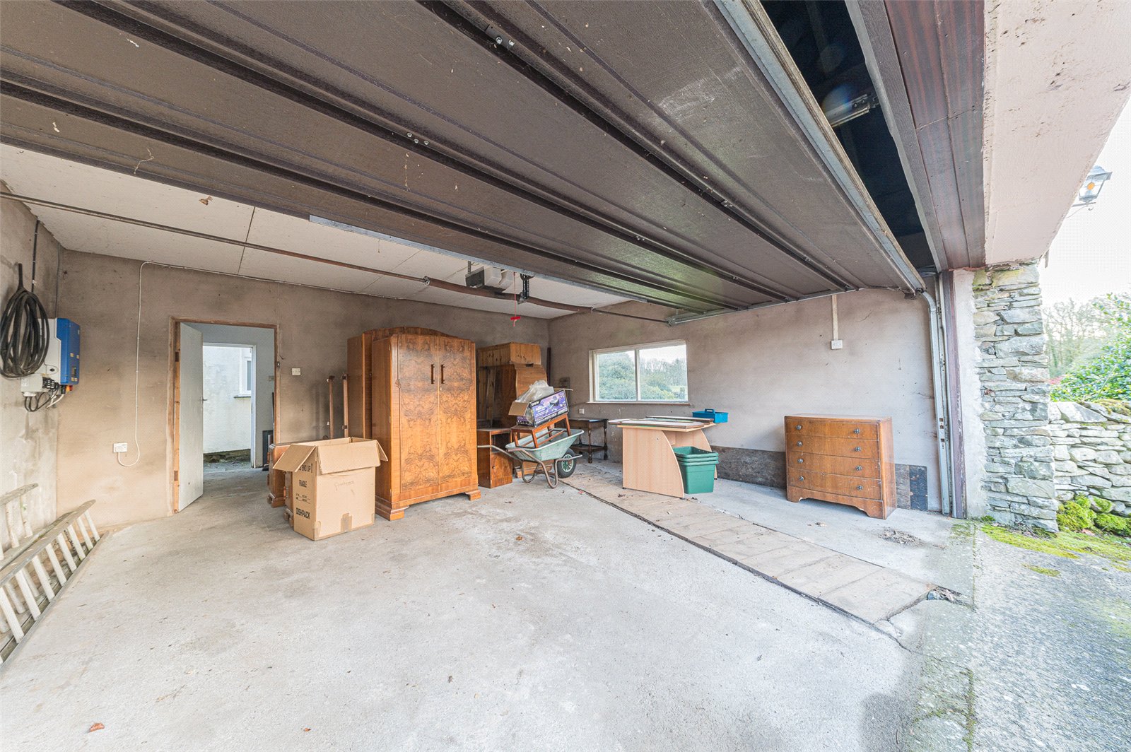 Electric up and over door and power. PV Solar panels are fitted to the roof and there is a double glazed window and inspection pit.