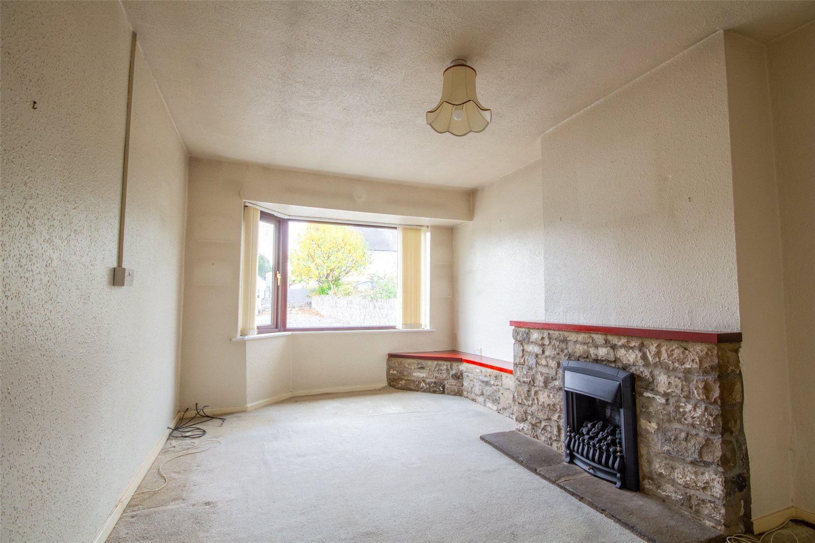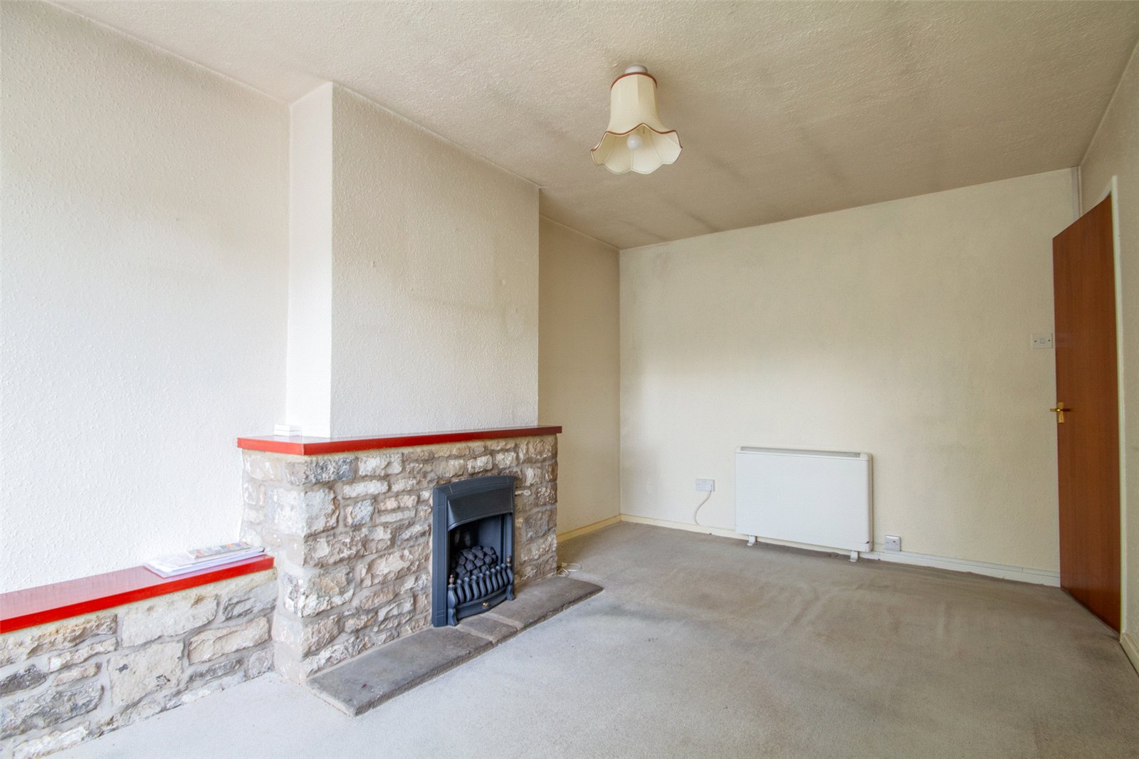 A UPVC double glazed bay window faces the front aspect with outlook over the low maintenance front garden. A living flame gas fire is set to a stone fire surround with wooden mantel and shelves. Ceiling light and a modern electric storage heater.