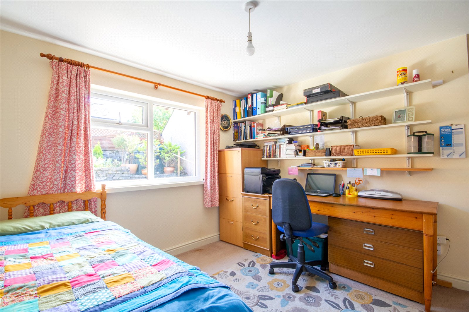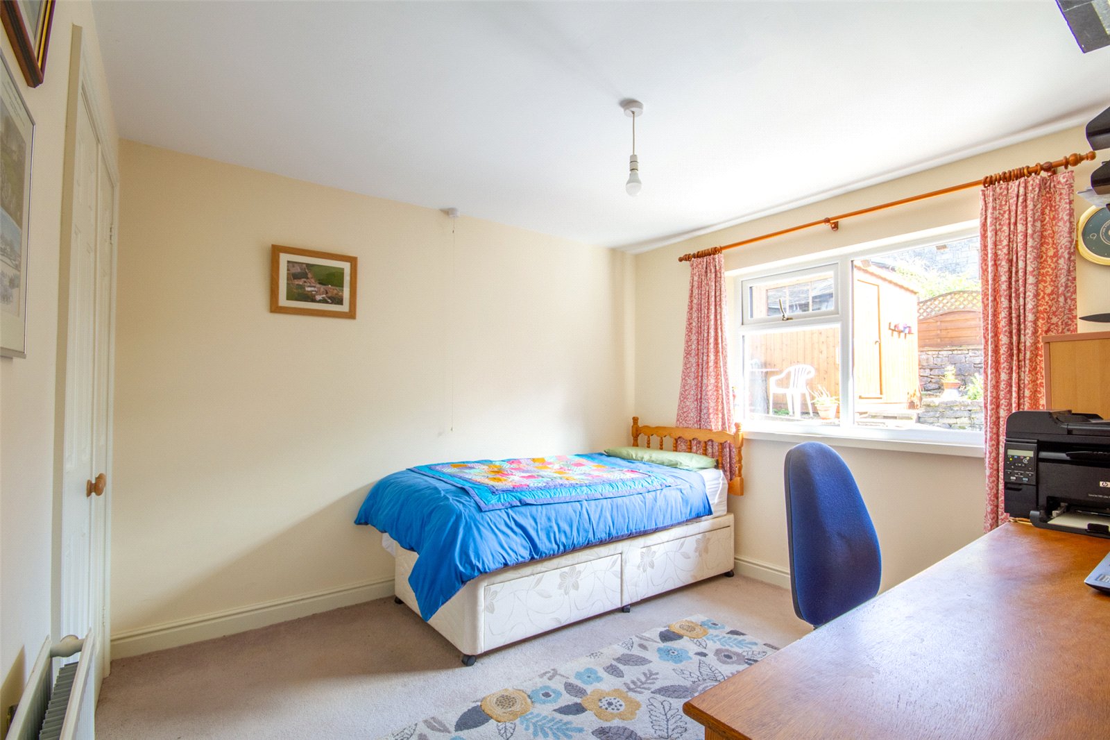At the rear of the house, the second double bedroom has a ceiling light, radiator, built in wardrobe and outlook over the garden/patio.
