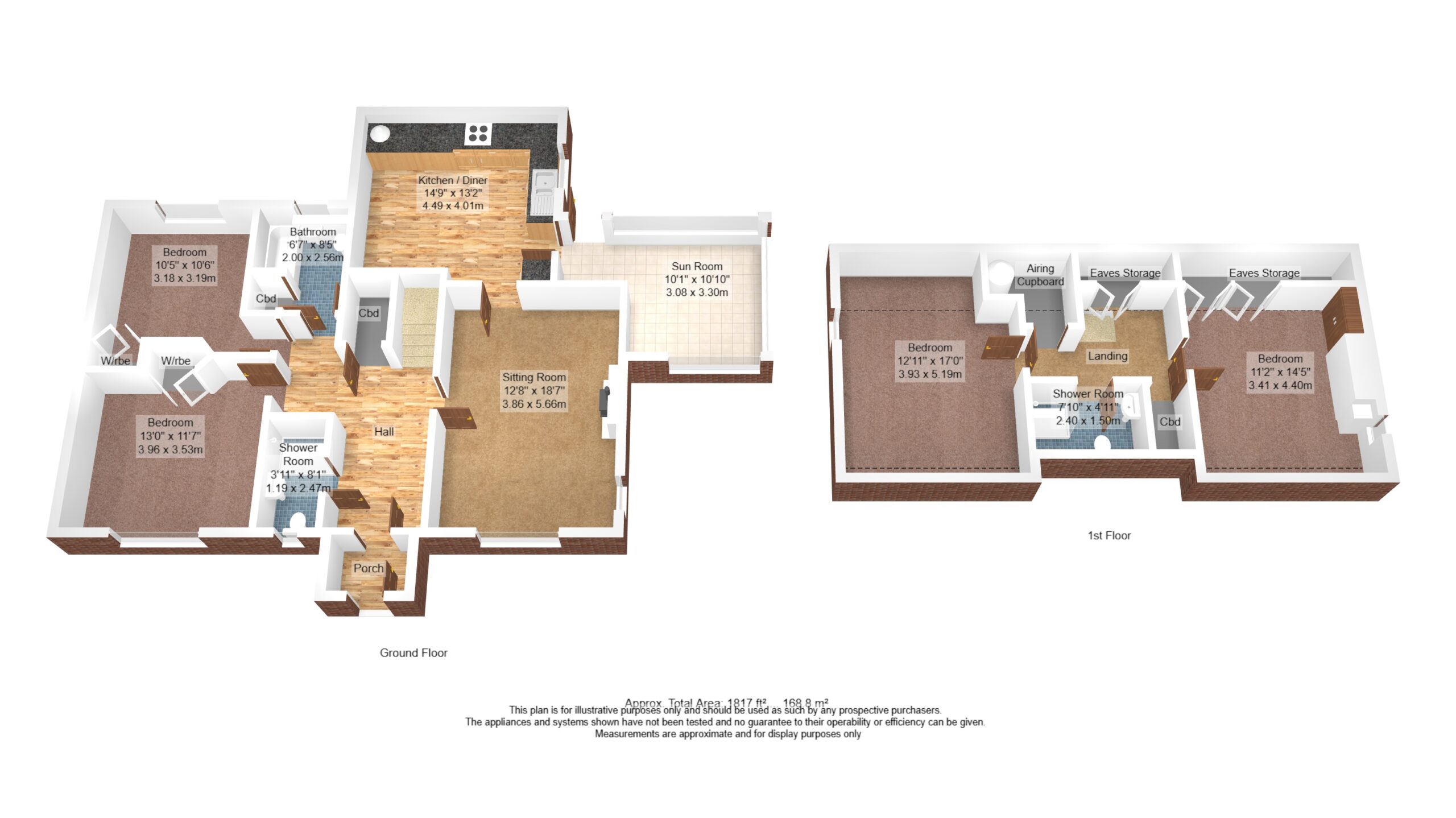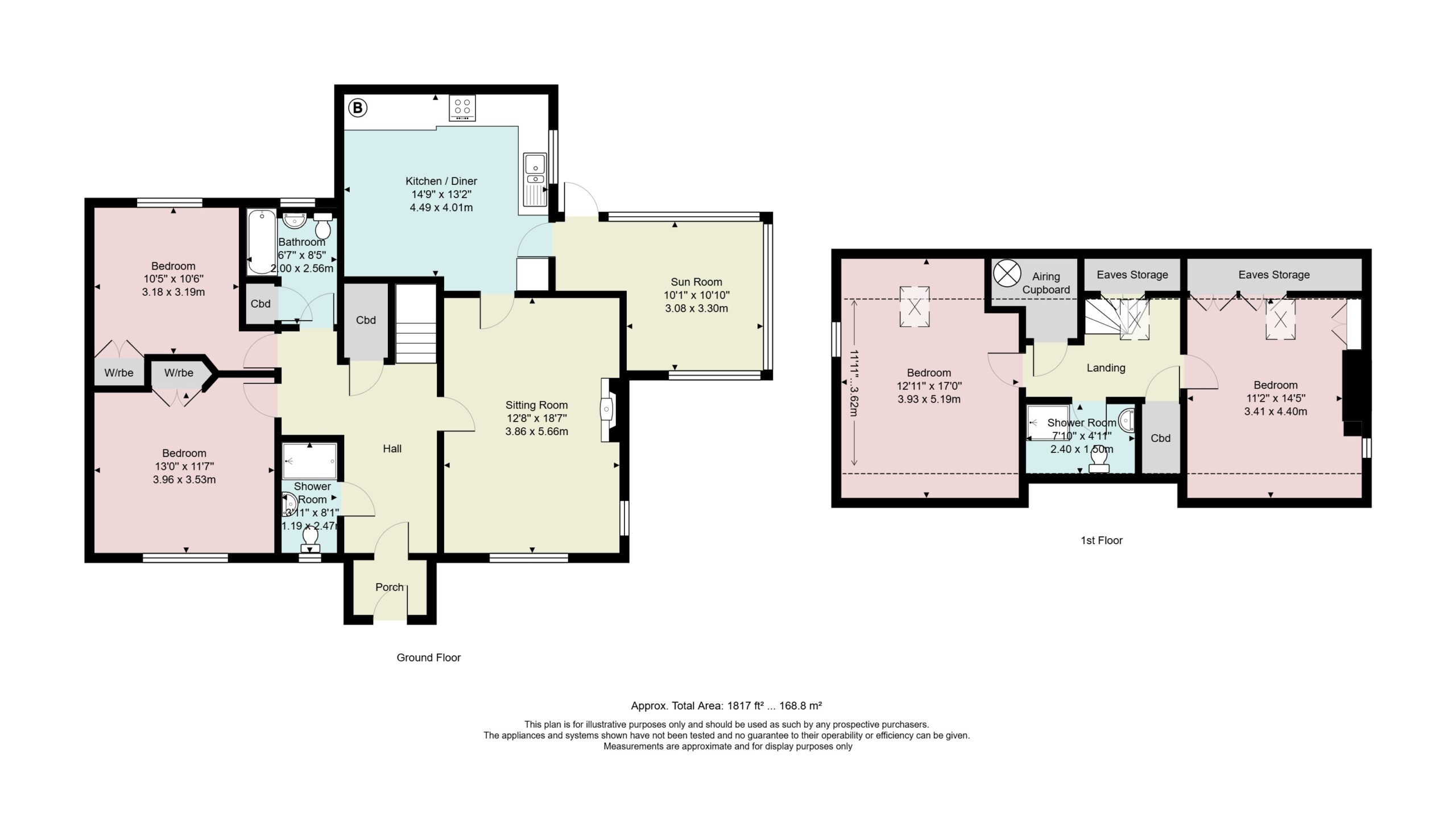 12' 11" x 17' 0" (3.95m x 5.19m) max