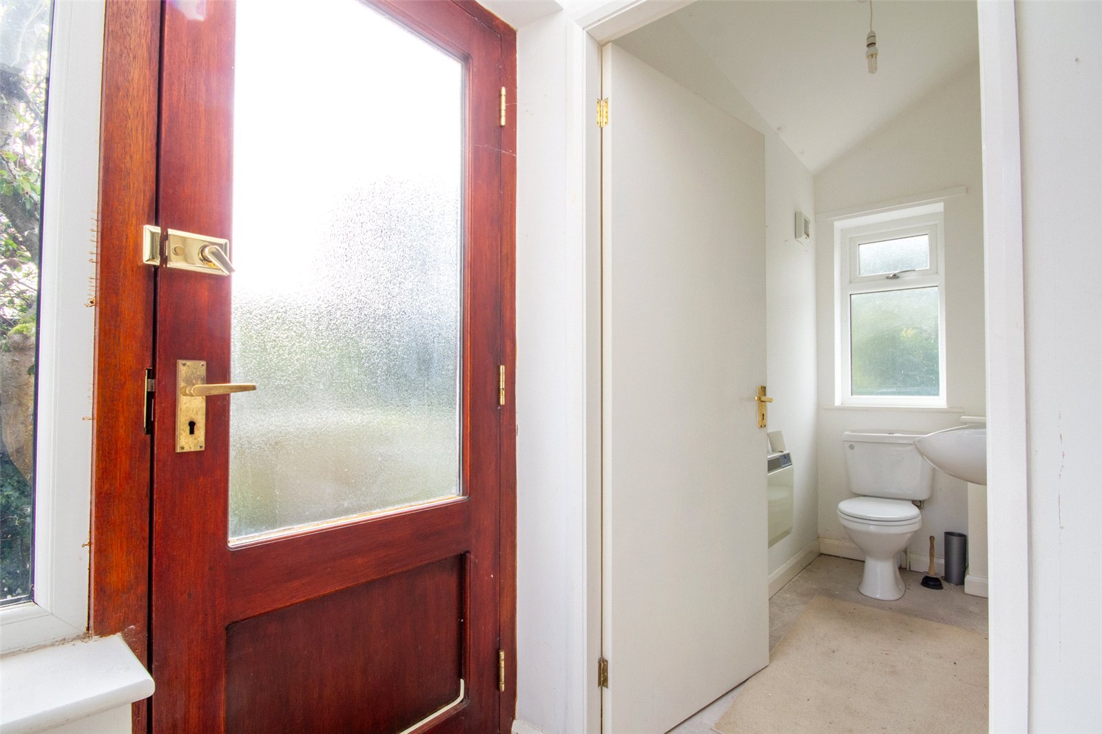 From the front garden and driveway, steps and a slope lead up to the side of the house. A frosted glazed door leads into: