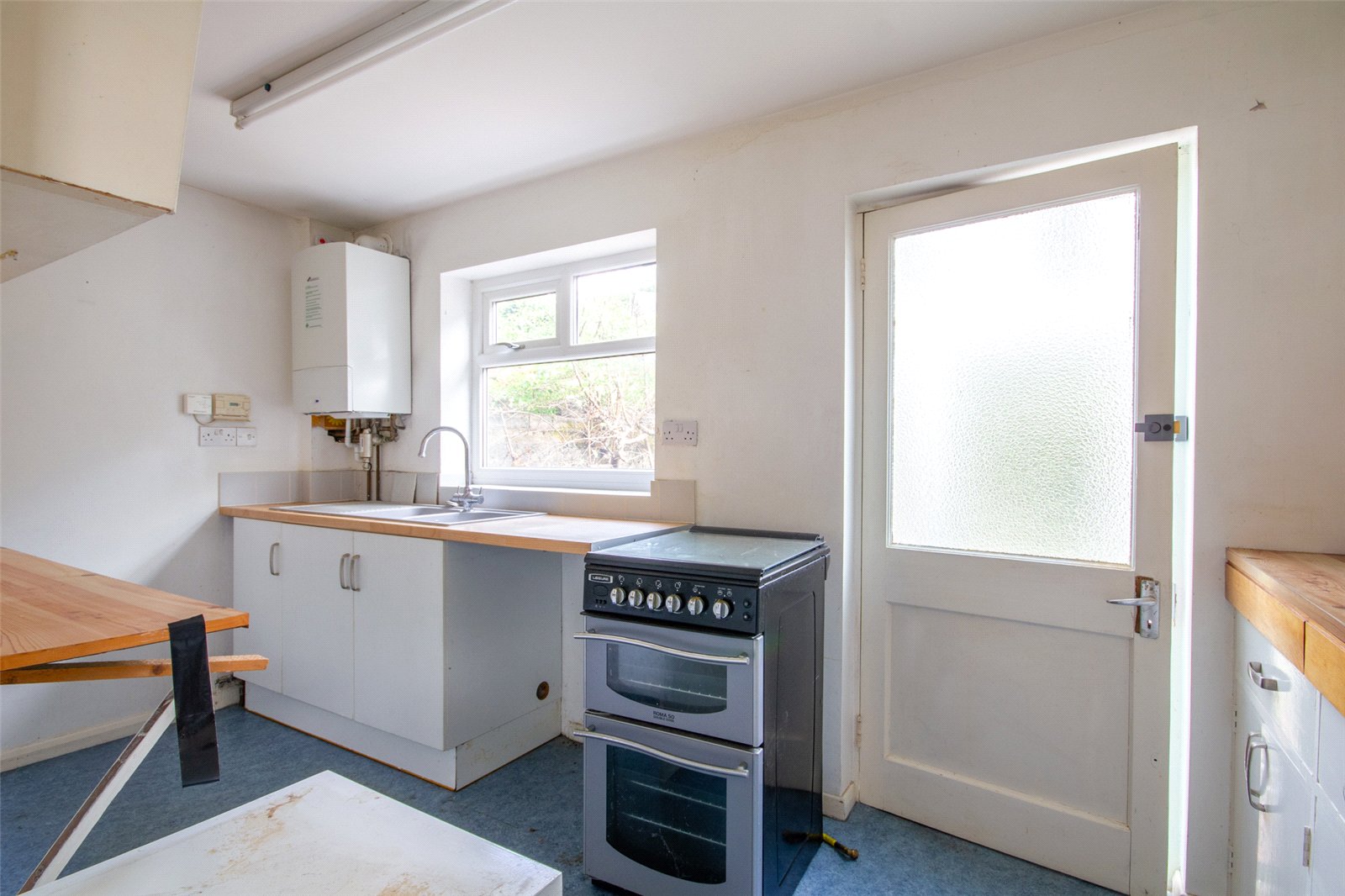 UPVC double glazed window overlooking the rear garden. Fitted with a basic range of base, wall and drawer units, wood grain effect worktops and a double sink with drainer. There is space for a gas cooker, plumbing for a washing machine and a wall mounted Worcester boiler. Radiator, ceiling light and glazed door to the rear porch.