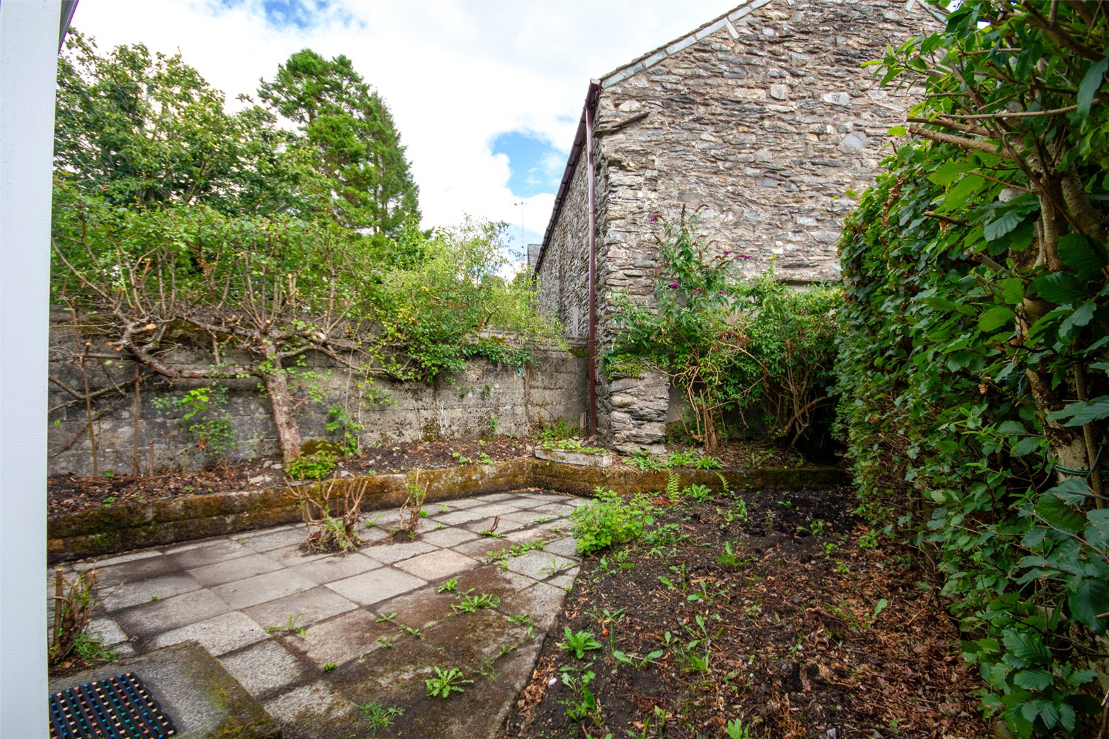 At the front of the house is a sloped lawned garden space with mature apple tree plus a path and ramp up to the main door on the side. The rear garden is flagged for ease with raised borders, a flower bed and buddleia.