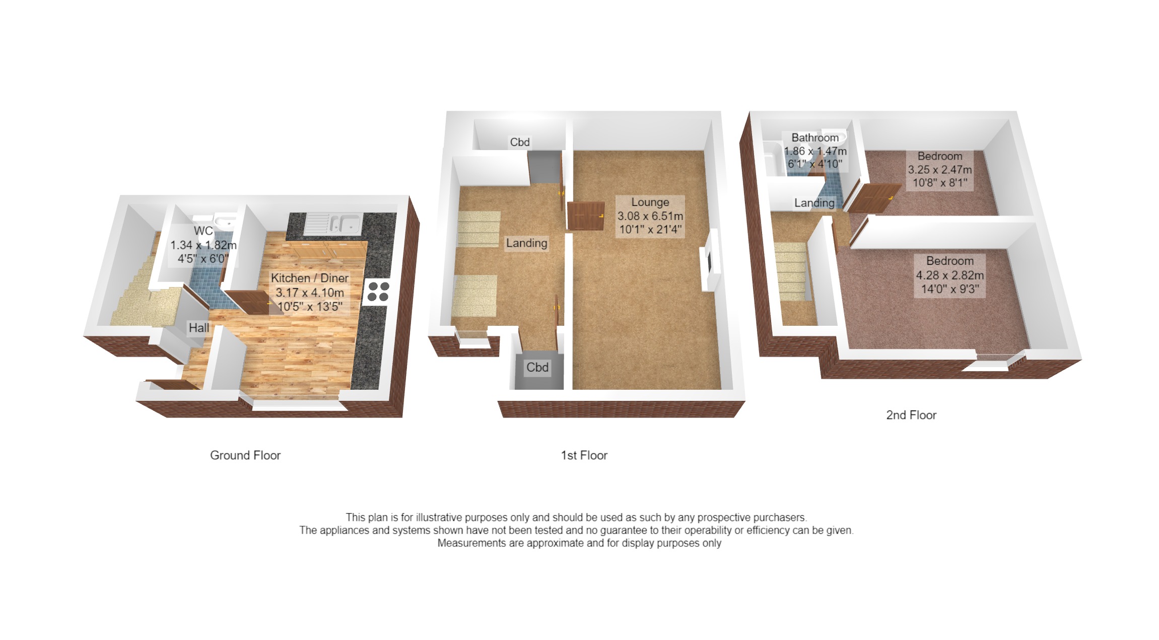 Close to the town centre and with an designated parking space, this is an elevated three storey mid terraced house with fantastic views. On the entry level is a kitchen diner plus cloakroom/WC whilst the lounge is on the first floor to take advantage of the open views over Kendal. There are two bedrooms and a bathroom to the second floor. Built in storage and cupboards throughout the property along with gas central heating and double glazing. Communal garden space and a covered designated parking space.