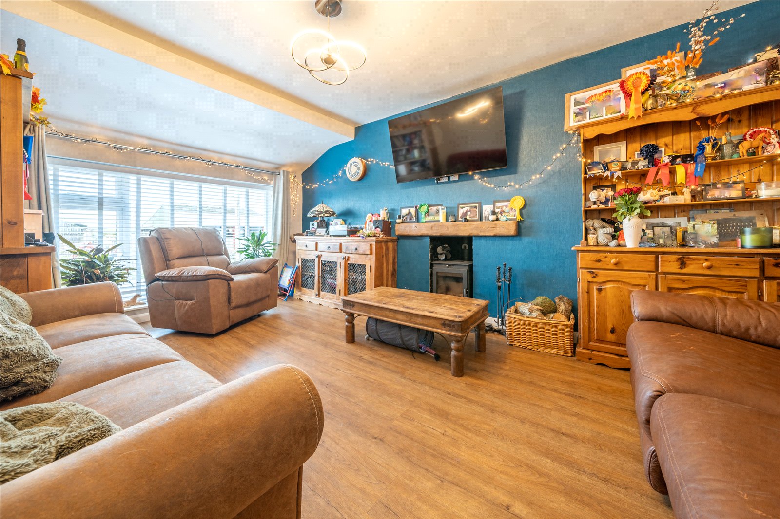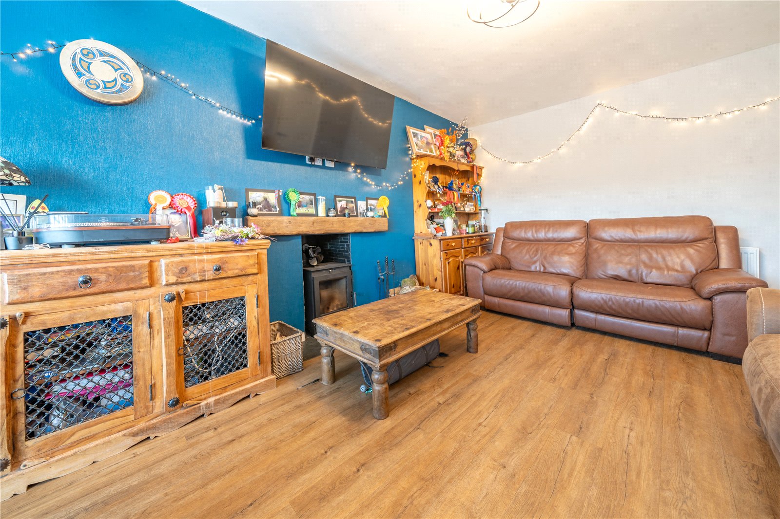 A UPVC double glazed window overlooks the front garden towards fields and countryside. There is wood effect flooring, a ceiling light and radiator, The wood burner prides a focal point and has a slate hearth and wood effect lintel.