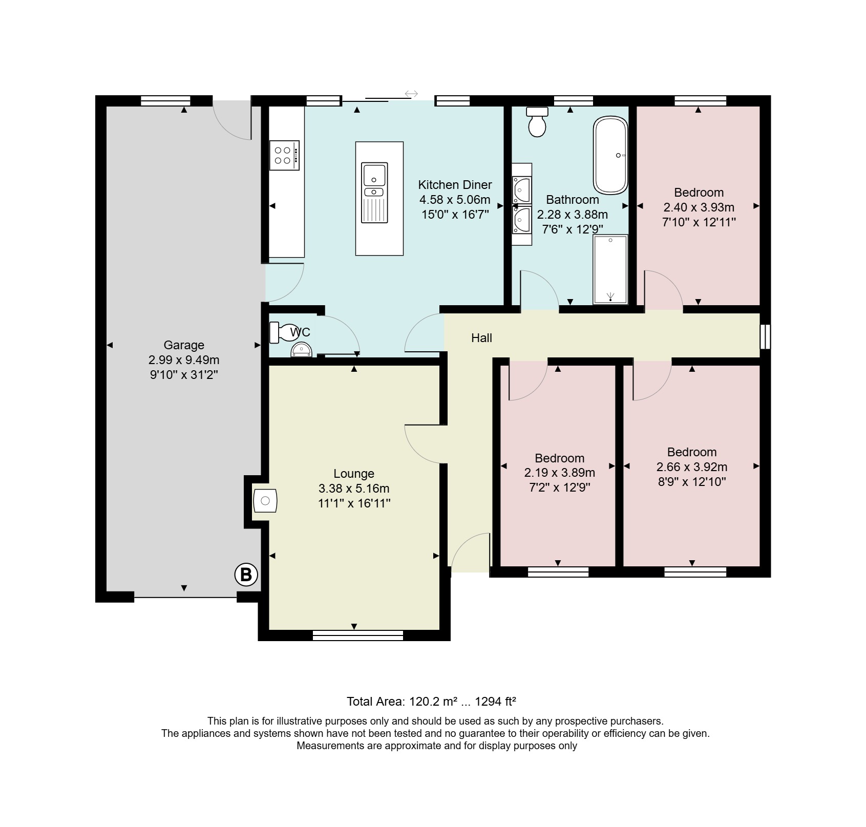 15' 0" x 16' 7" (4.58m x 5.06m) max including cloakroom