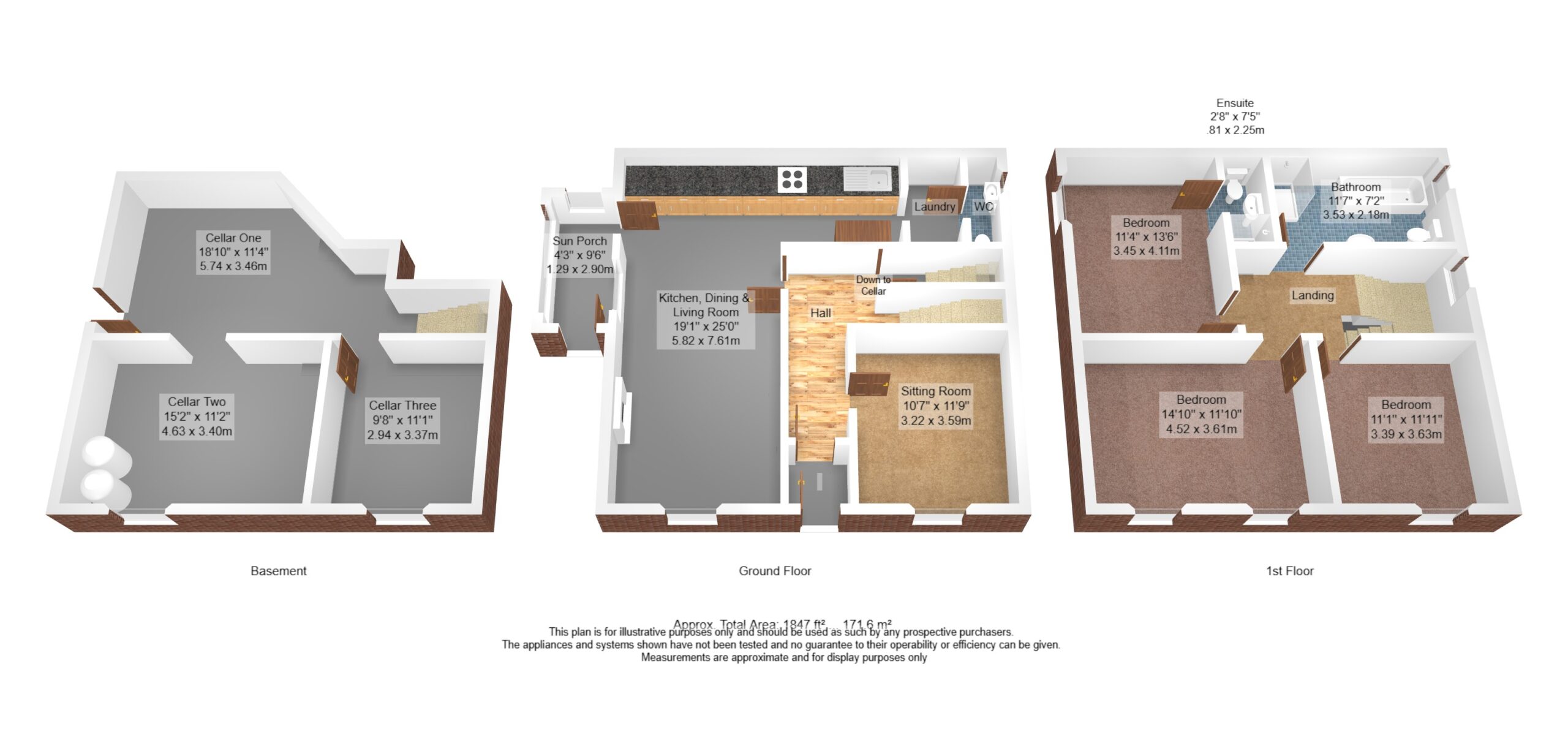 Centrally located in Milnthorpe with amenities and facilities on the doorstep, this well presented period property must be viewed to be appreciated. Updated and reconfigured in recent years, modern fittings have been seamlessly blended with elegant traditional features creating a light and airy home. A living/dining/kitchen space is perfect for entertaining and a laundry and cloakroom have been added. The separate sitting room is a relaxing space and there is a useful sun porch at the side. The three bedrooms are all doubles - one has a modern ensuite, and there is a generous family bathroom with four piece suite. An extensive basement is ideal for storage of bikes, outdoor gear etc and could offer further potential should buyers wish to extend the accommodation. Externally is an enclosed courtyard garden at the side plus a useful open garage/store just across the road. Available with no onward chain, the property is gas centrally heated and double glazing (less one window).