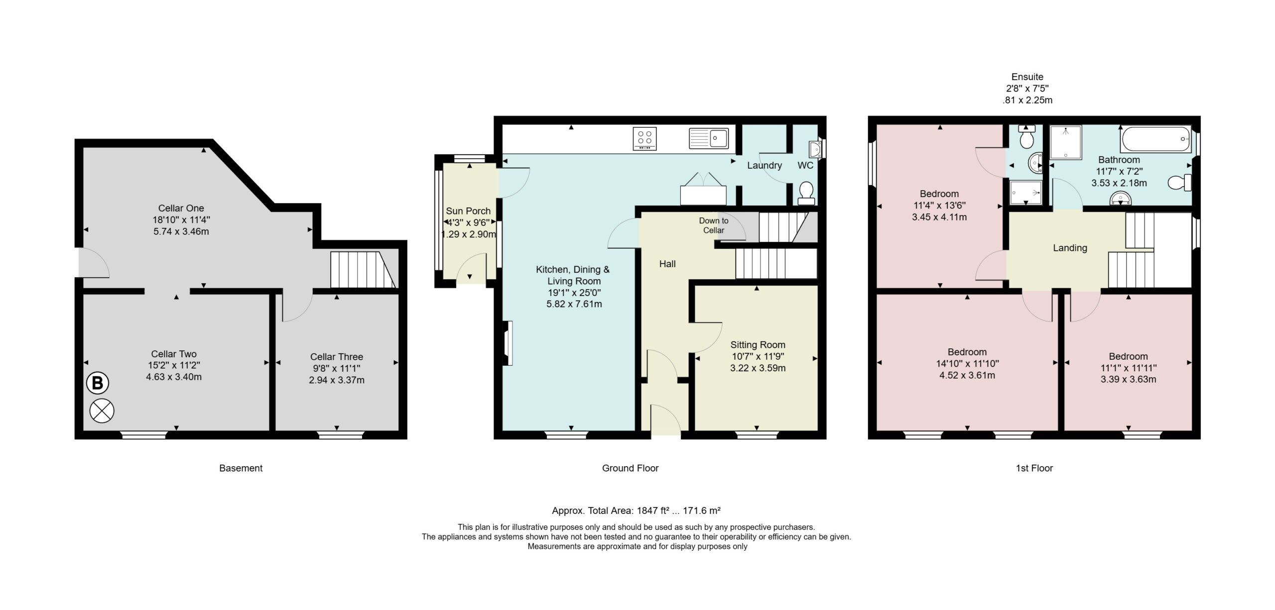 Stone steps lead down from the hallway. Divided into three areas, the cellars offer excellent storage and further potential (subject to relevant planning). A door leads to the side aspect and there are two UPVC double glazed windows. Power and light, a sink unit, tap and a radiator. Worcester boiler and hot water cylinder.