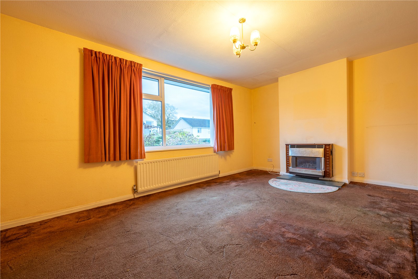 A good sized room with a large UPVC double glazed window to the front. The Baxi fire has a back boiler and is set to a slate hearth and there is a ceiling light, radiator and two wall lights.