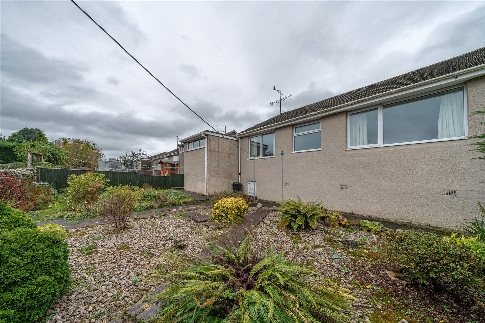 At the front of the bungalow is a low maintenance gravelled garden with shrub borders and a driveway leading to the carport and garage. A path at the side of the garage leads to the rear garden. Also designed with low maintenance in mind, the rear garden has gravelled interspersed with ferns and shrubs and a good side herbaceous border. An under croft with limited head height provides storage.