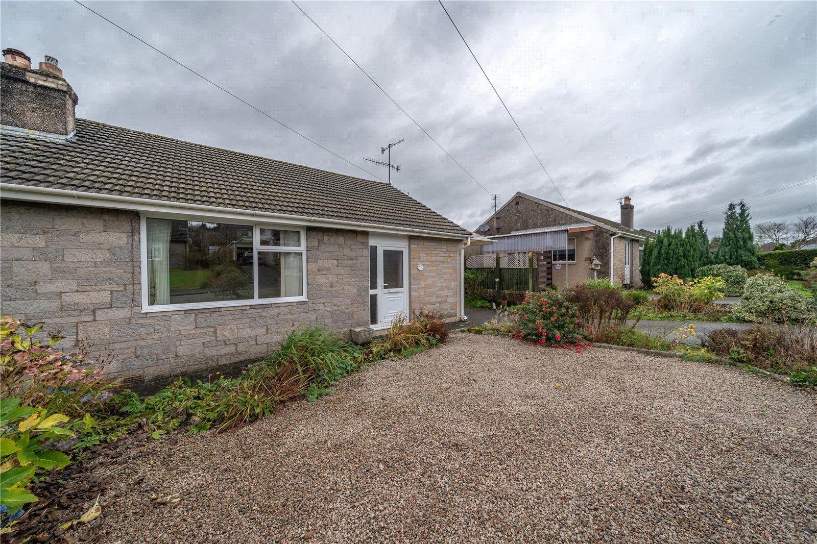 With local shop, supermarket, doctors and bus routes close by, this semi-detached bungalow is perfect for buyers looking to downsize and future proof their next home. The easily managed level accommodation offers two double bedrooms, a pleasant lounge, bathroom and kitchen. There is a good amount of built in storage with a coat cupboard in the hallway, generous pantry, inner hall cupboard and fitted wardrobes to both bedrooms. The gardens have been landscaped with ease in mind with gravelled areas at both at the front and rear, softened by well planned borders, flowering shrubs and perennials plus there is a garage, car port and driveway The property is gas centrally heated and UPVC double glazed, however some updating is required.